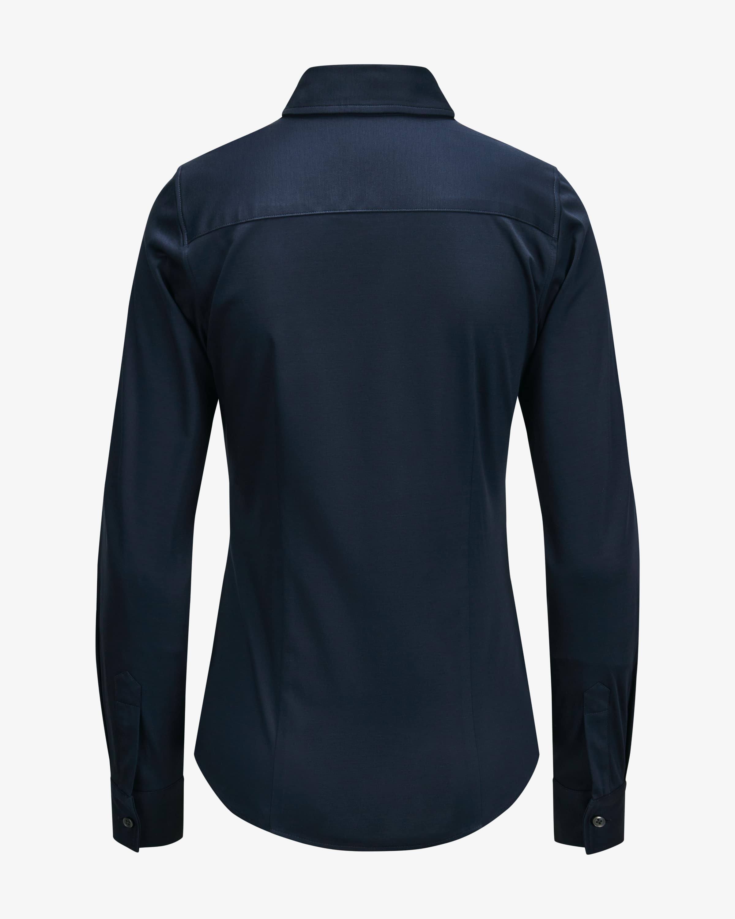 Hemdbluse für Damen von Soluzione in Dunkelblau. Das Modell erreicht durch die Jersey-Qualität eine höhere Elastizität und ist deshalb besonders weich und angenehm zu tragen. Die taillierte Form und die optimale Länge machen die Bluse zum perfekten Begleiter für geschäftliche wie auch private Anlässe. Die schmale Knopfleiste und die dezenten Abnäher runden das Modell gekonnt ab.
