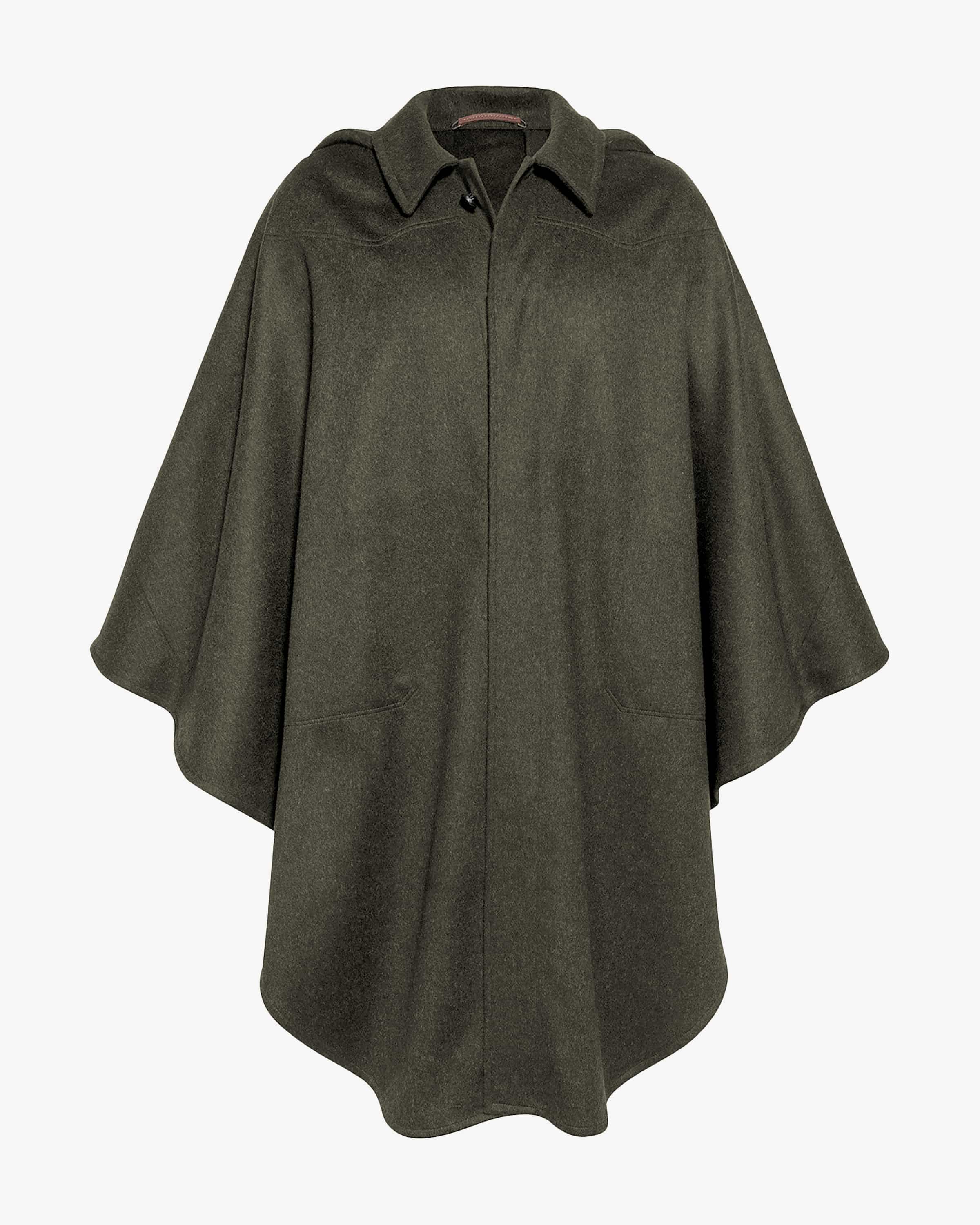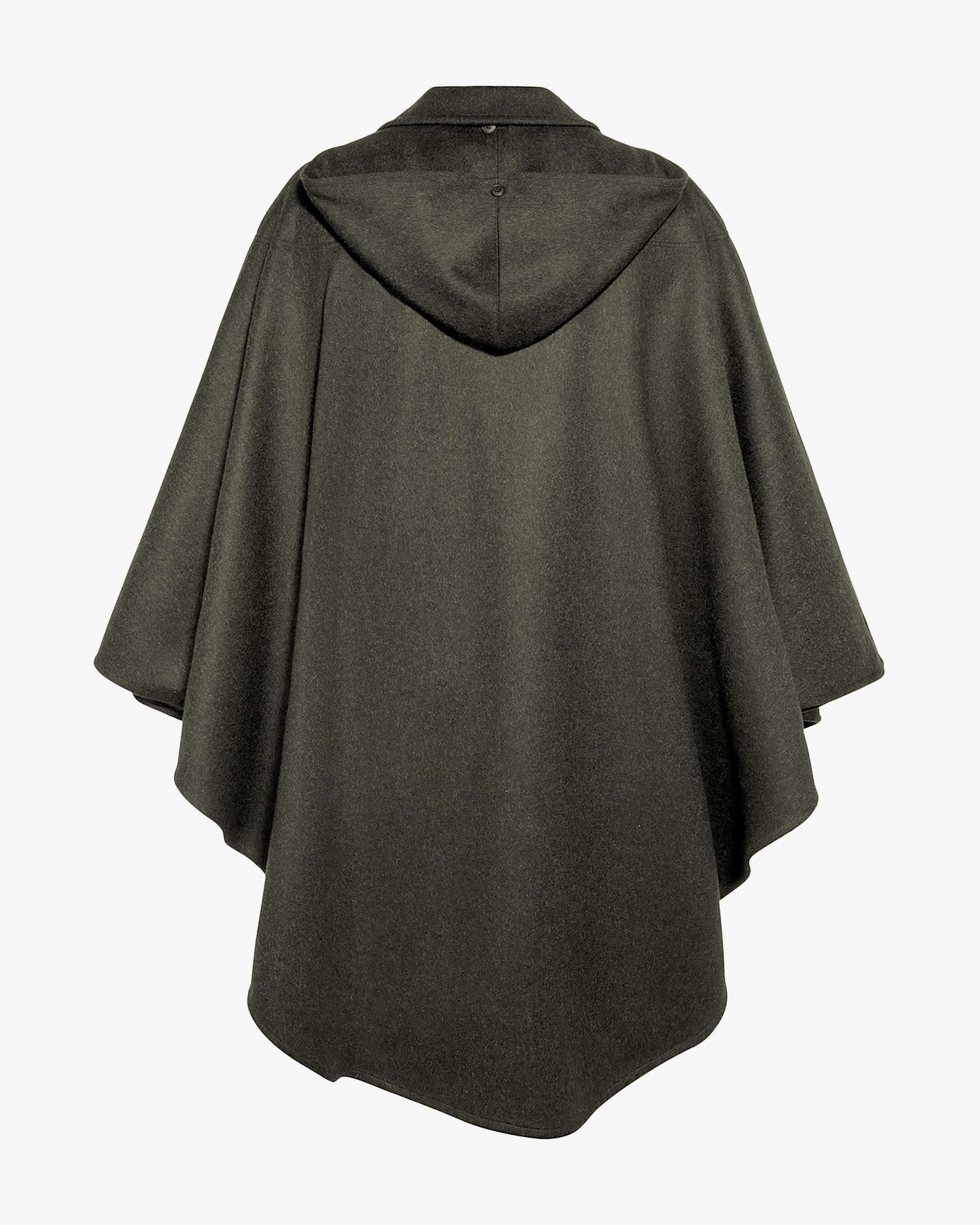 Försterkragen Trachten-Cape für Herren von Steinbock in Dunkelgrün. Das ausgestellte Modell aus hochwertigem Schurwoll-Mix begeistert durch einen modischen Hemdkragen sowie eine abnehmbare Kapuze. Der Saum weist auf der Innenseite zwei knöpfbare Riegel auf, während eine verdeckte Knopfleiste das Design mit melierter Optik gekonnt ergänzt.