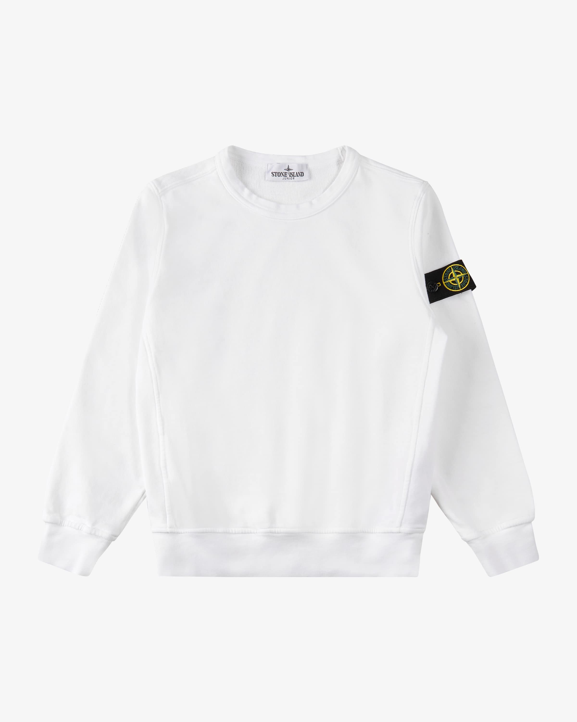 Sweatshirt für Jungen von Stone Island Junior in Weiß. Die Mini-Version der ikonischen Sportswear-Marke – urban, technisch, cool. Auch dieses Modell in hochwertiger Bio-Baumwoll-Qualität überzeugt mit klassischem Schnitt, während die knöpfbare Logo-Plakette einen sportiven Begleiter für Ihren Kleinen kreiert.