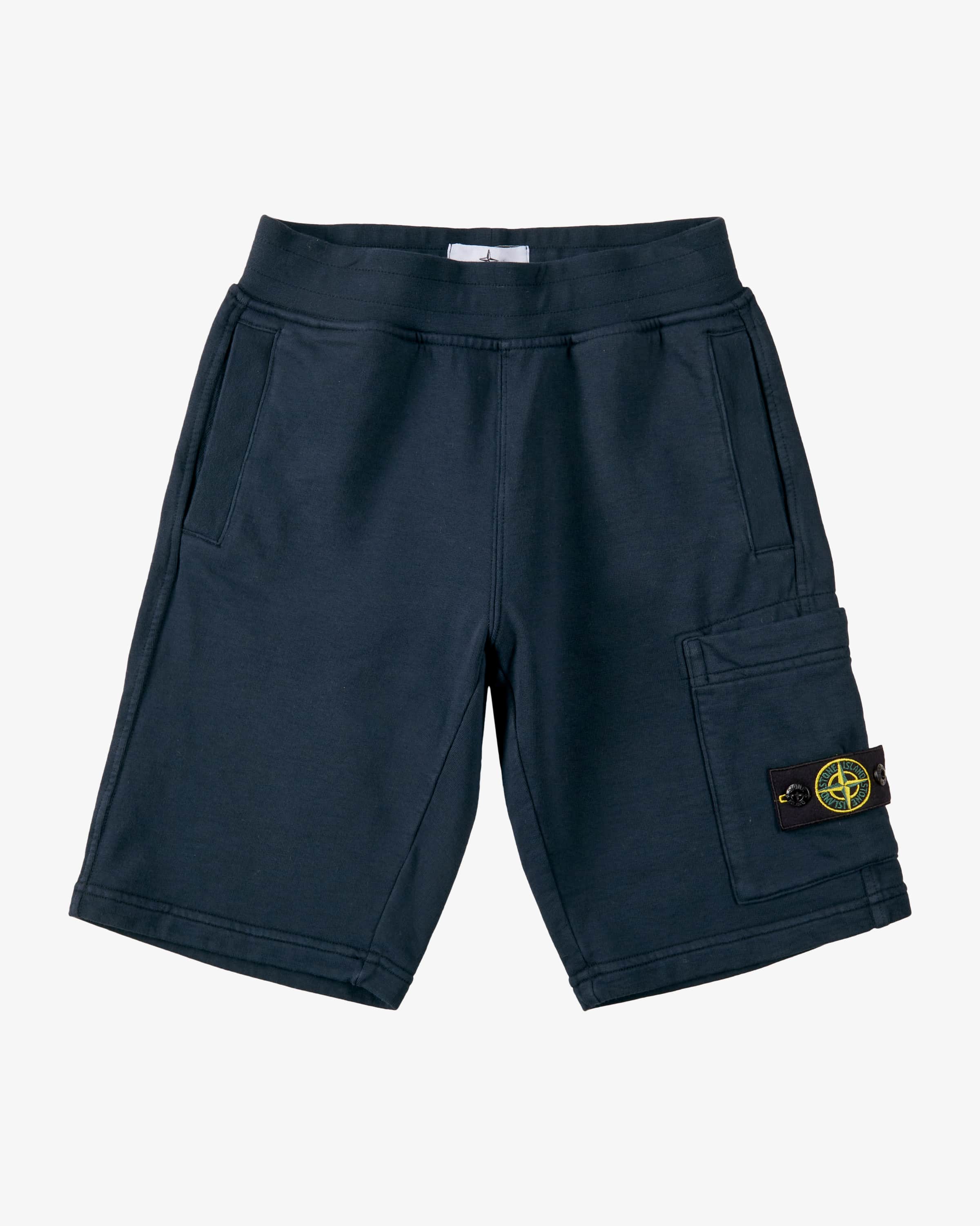 Sweatshorts für Jungen von Stone Island Junior in Navy. Die Mini-Version der ikonischen Sportswear-Marke – urban, technisch, cool. Das Modell überzeugt in legerer Sweat-Aufmachung, während die knöpfbare Logo-Plakette den Casual-Look charakteristisch vollendet.