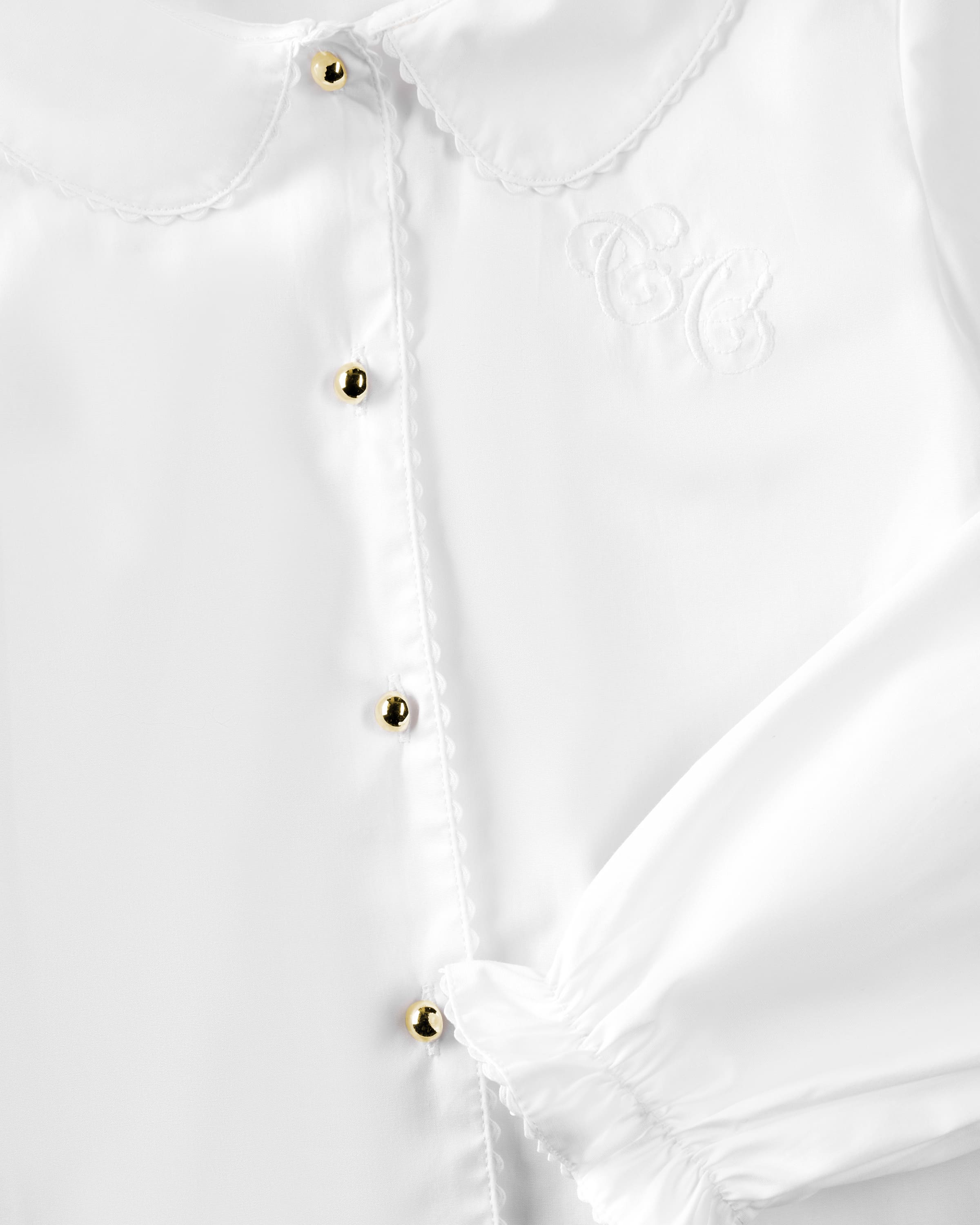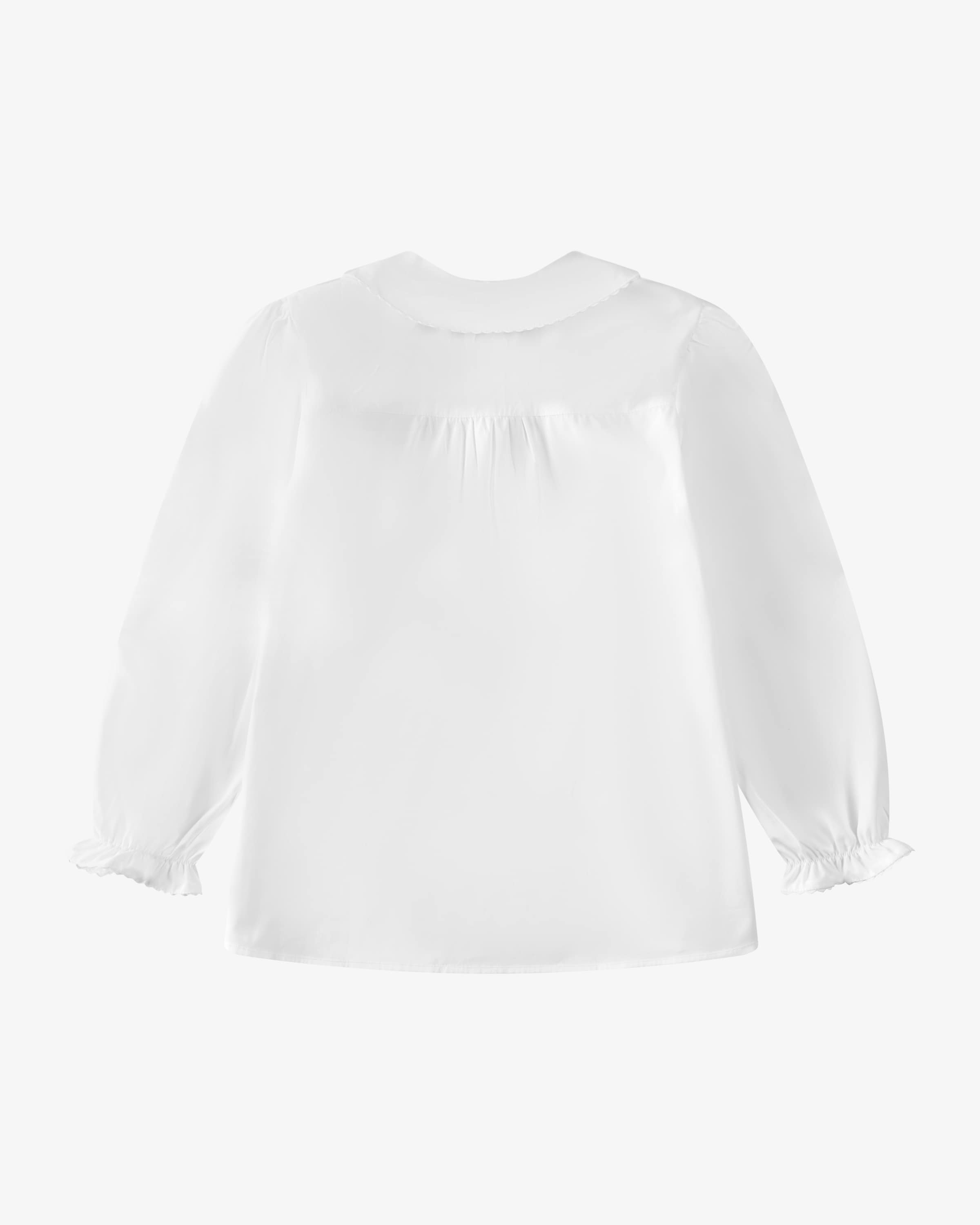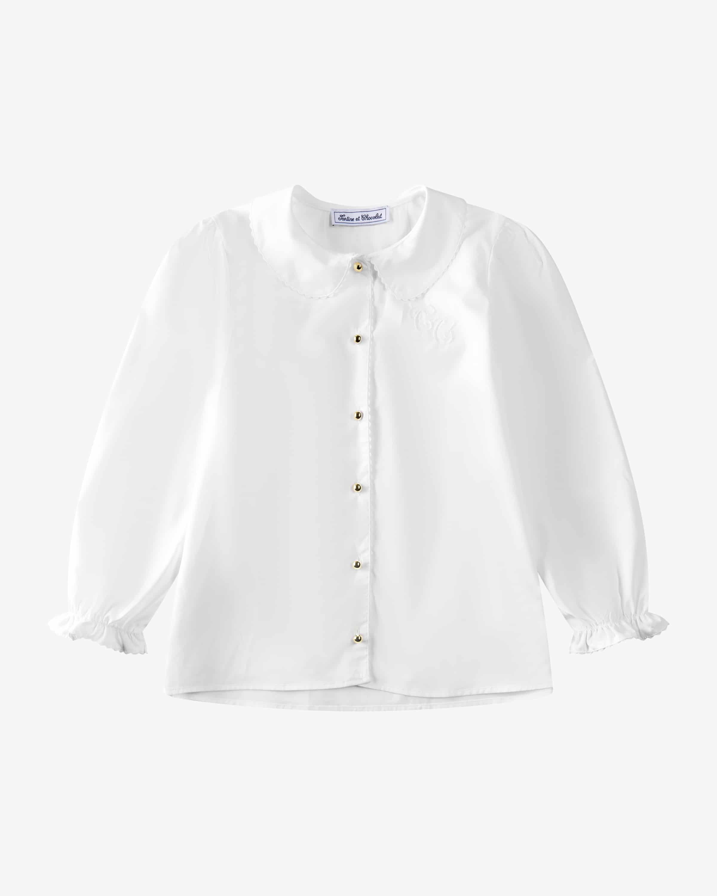 Bluse für Mädchen von Tartine et Chocolat in Weiß. Das Modell punktet mit angenehmer Baumwoll-Qualität, während der niedliche Bubi-Kragen sowie die goldfarbenen Kugelknöpfe dem Back-to-School-Look einen besonderen Touch verleihen. Zarte Zierborten setzen zugleich festliche Akzente.