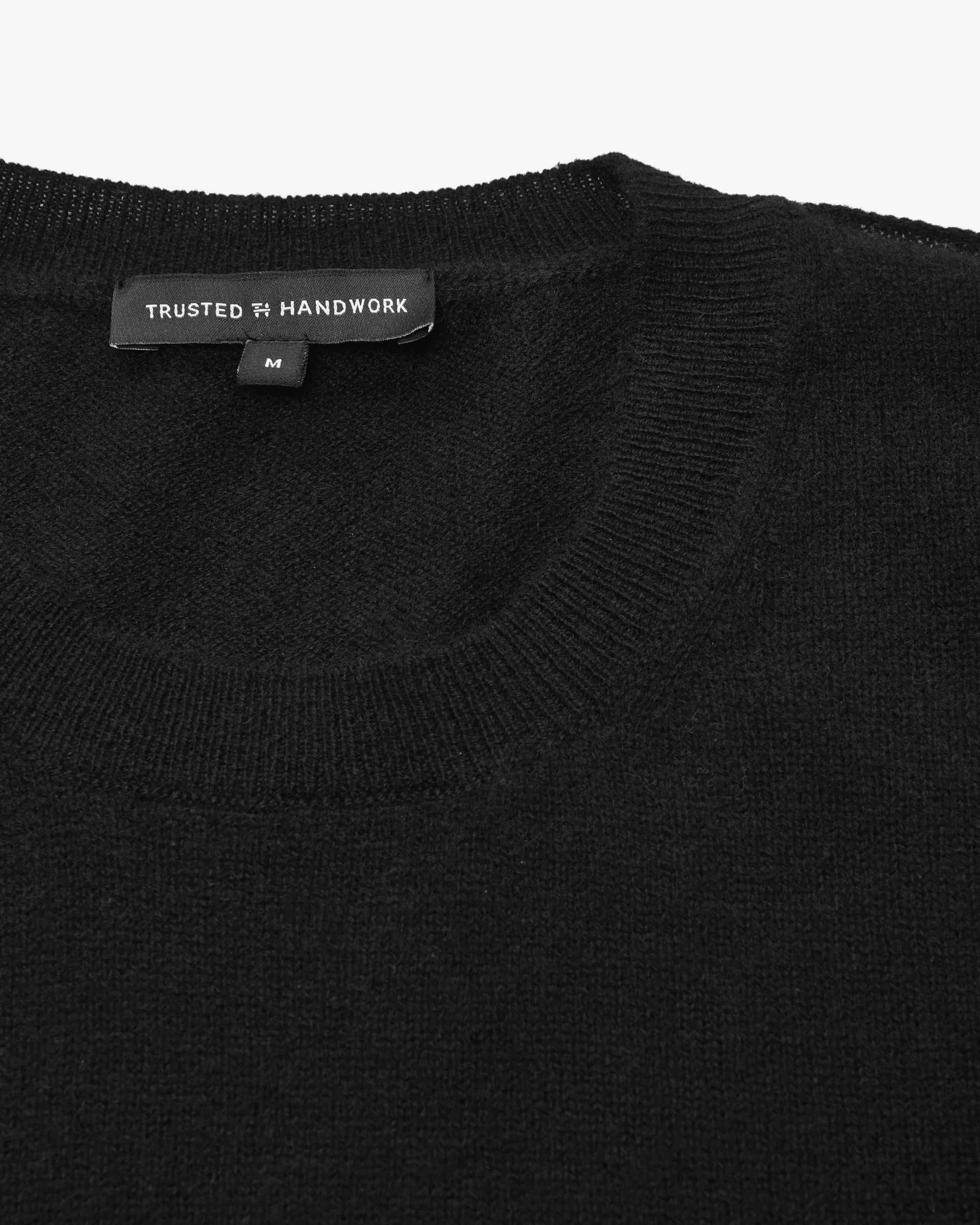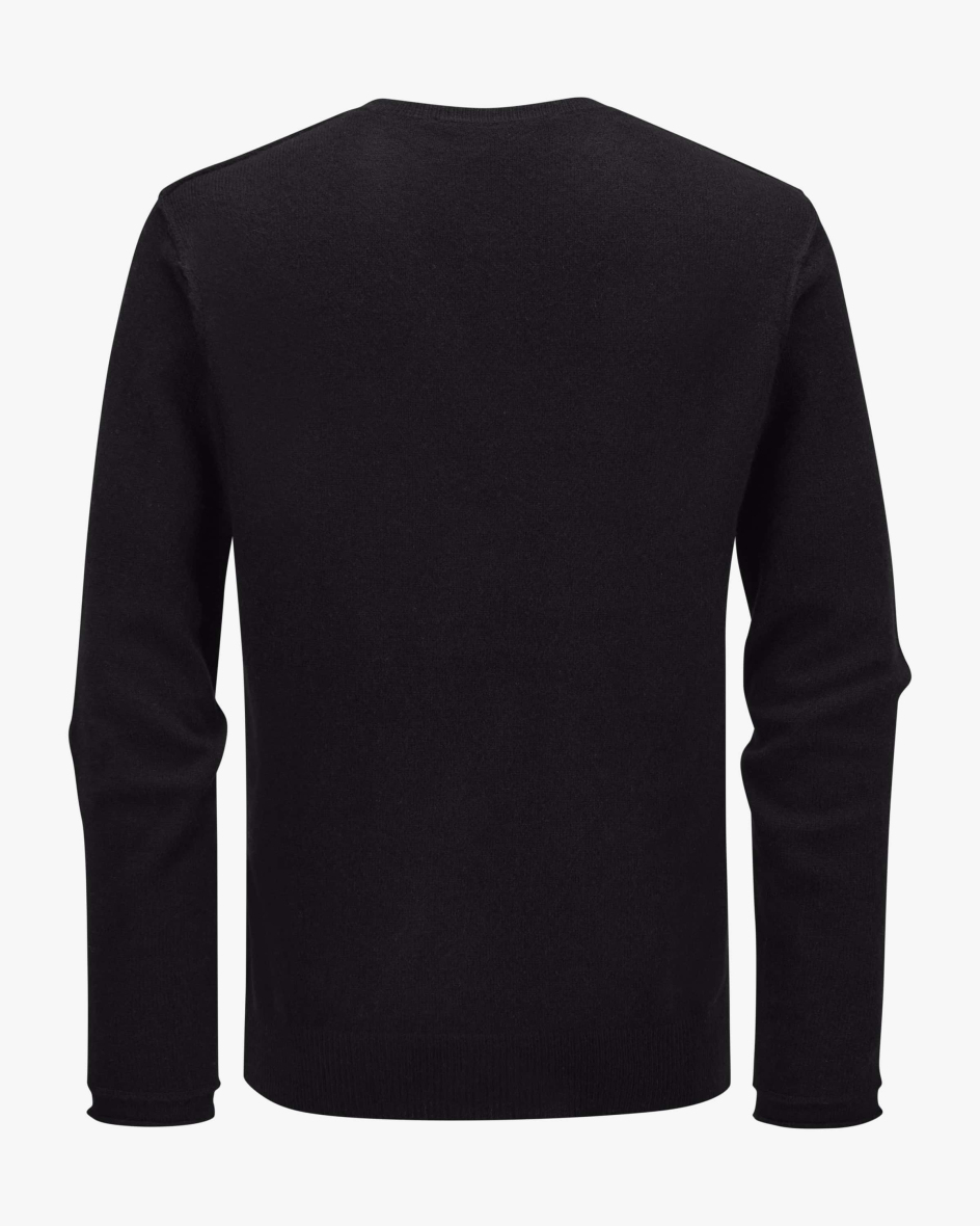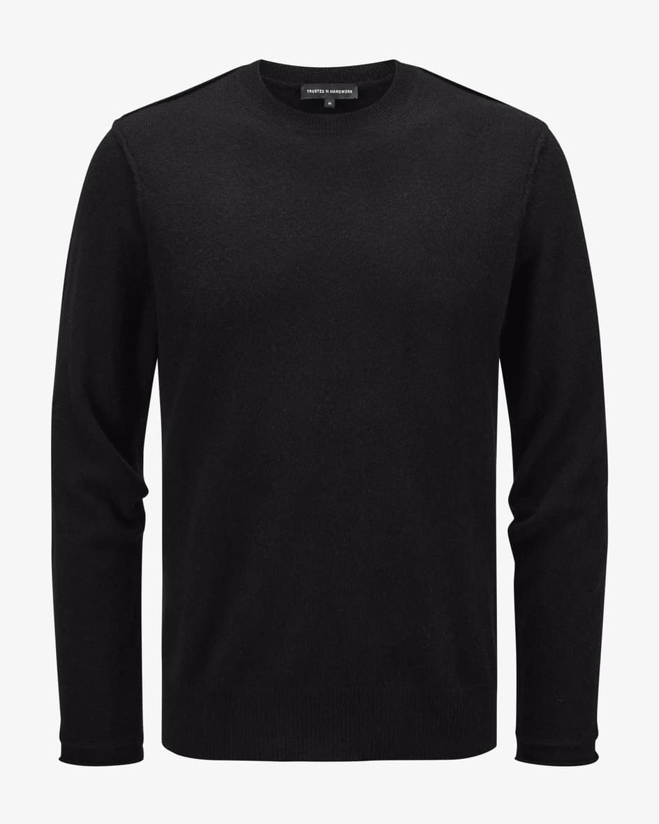 Cashmere-Pullover für Herren von Trusted Handwork in Schwarz. Mit Liebe und Leidenschaft designt das Label nachhaltig produzierte, handgefertigte Kleidung. Dieses Modell präsentiert sich mit besonders weicher, hochwertiger Cashmere- Qualität und leichter Strick-Haptik, während die Inside-Out-Nähte sowie der Rollsaum an den Ärmelenden legere Akzente setzen.