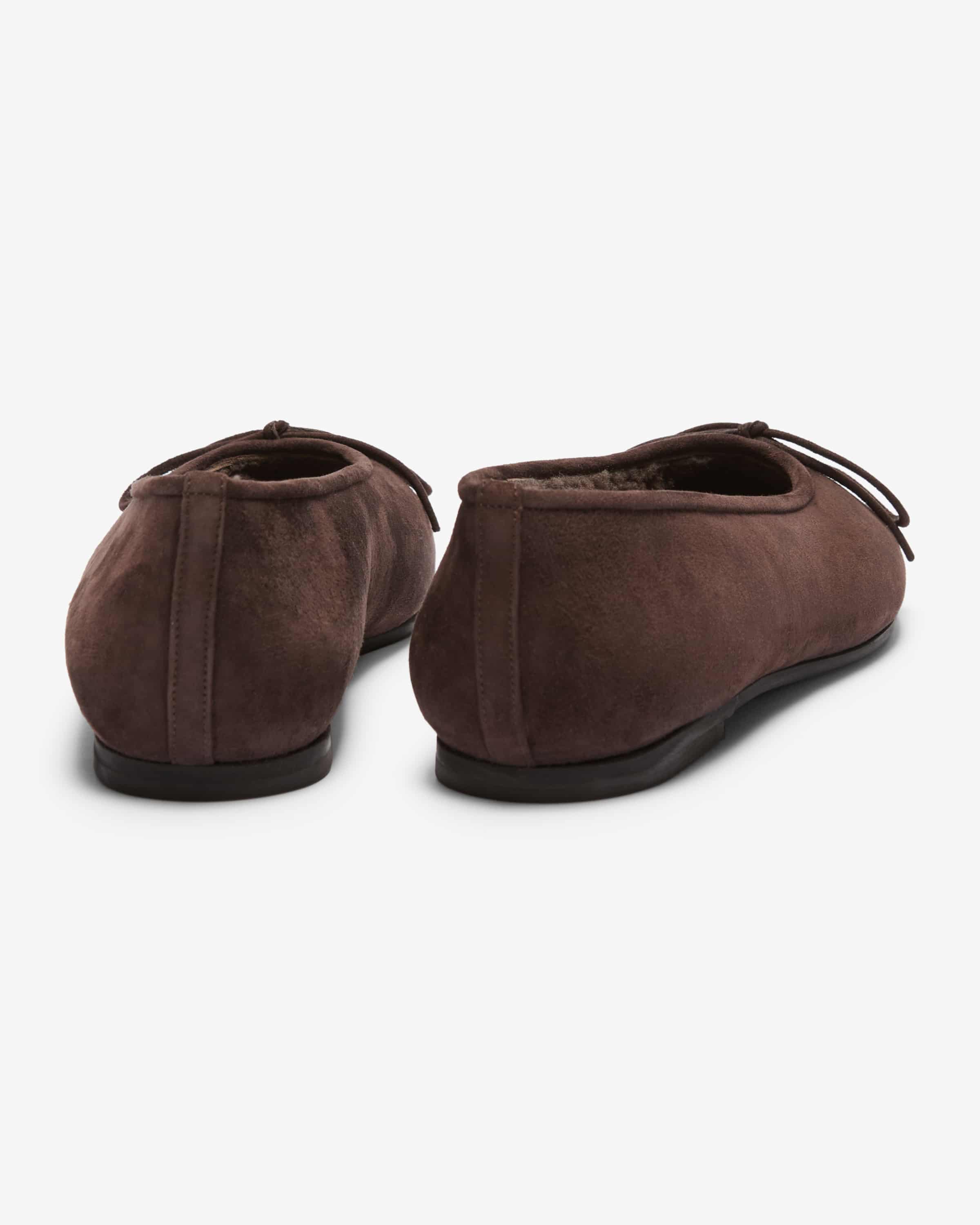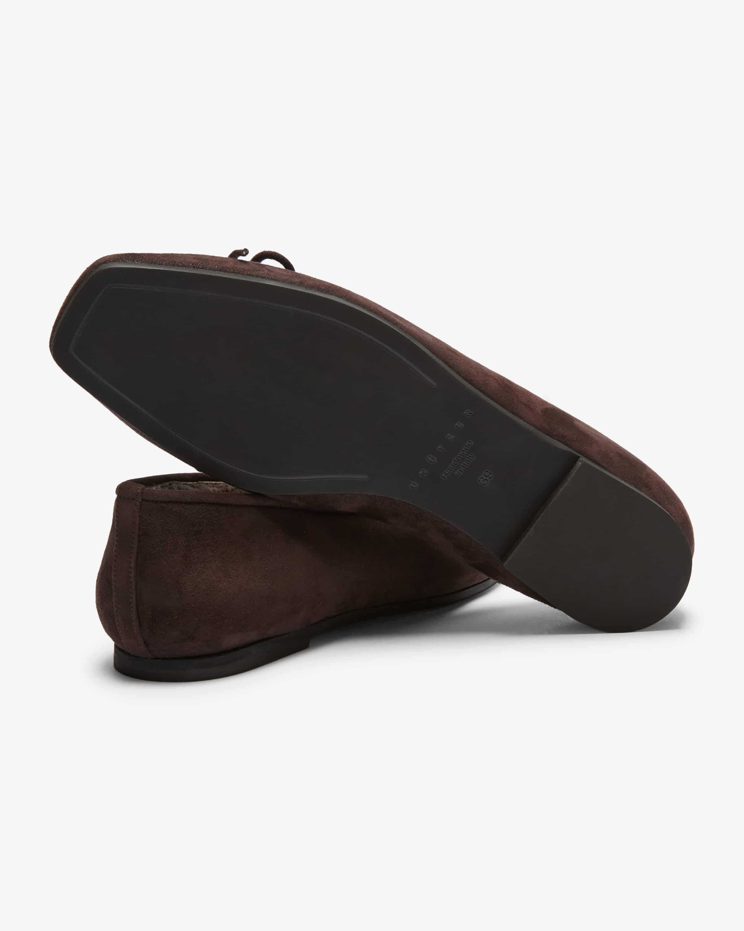 Ballerinas für Damen von Unützer in Dunkelbraun. Die hochwertige Veloursleder- Qualität sowie das Fell-Innenfutter besticht mit einer angenehmen Haptik, während das schlichte Design einen vielseitigen Favoriten mit elegantem Charme kreiert.