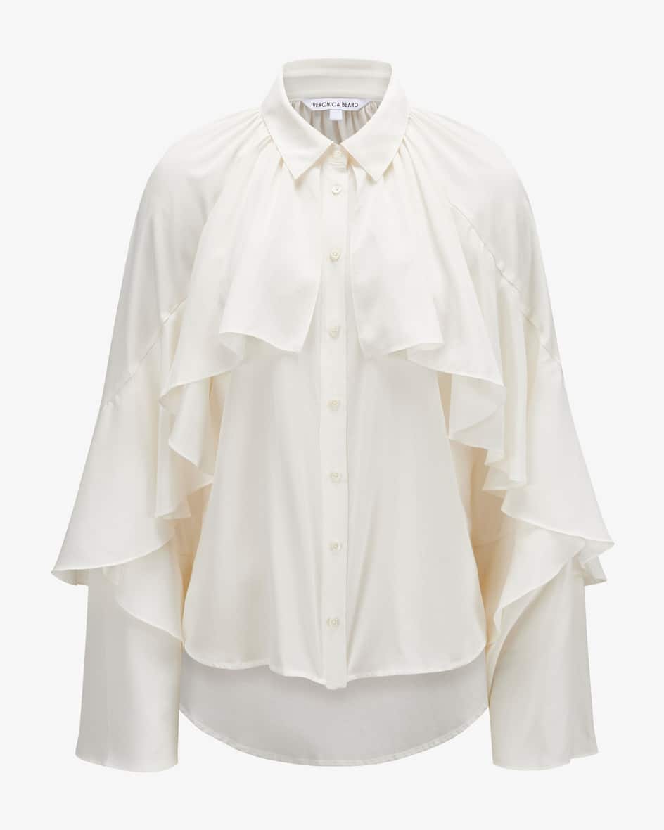 Demaris Seidenbluse für Damen von Veronica Beard in Ecru. Ein New Yorker Label für clevere Power-Looks mit femininer Note. Auch dieses Modell überzeugt mit fließender Haptik, während die hochwertige Seiden-Qualität und raffinierte Aufmachung einen femininen Begleiter mit dem gewissen Etwas kreieren.