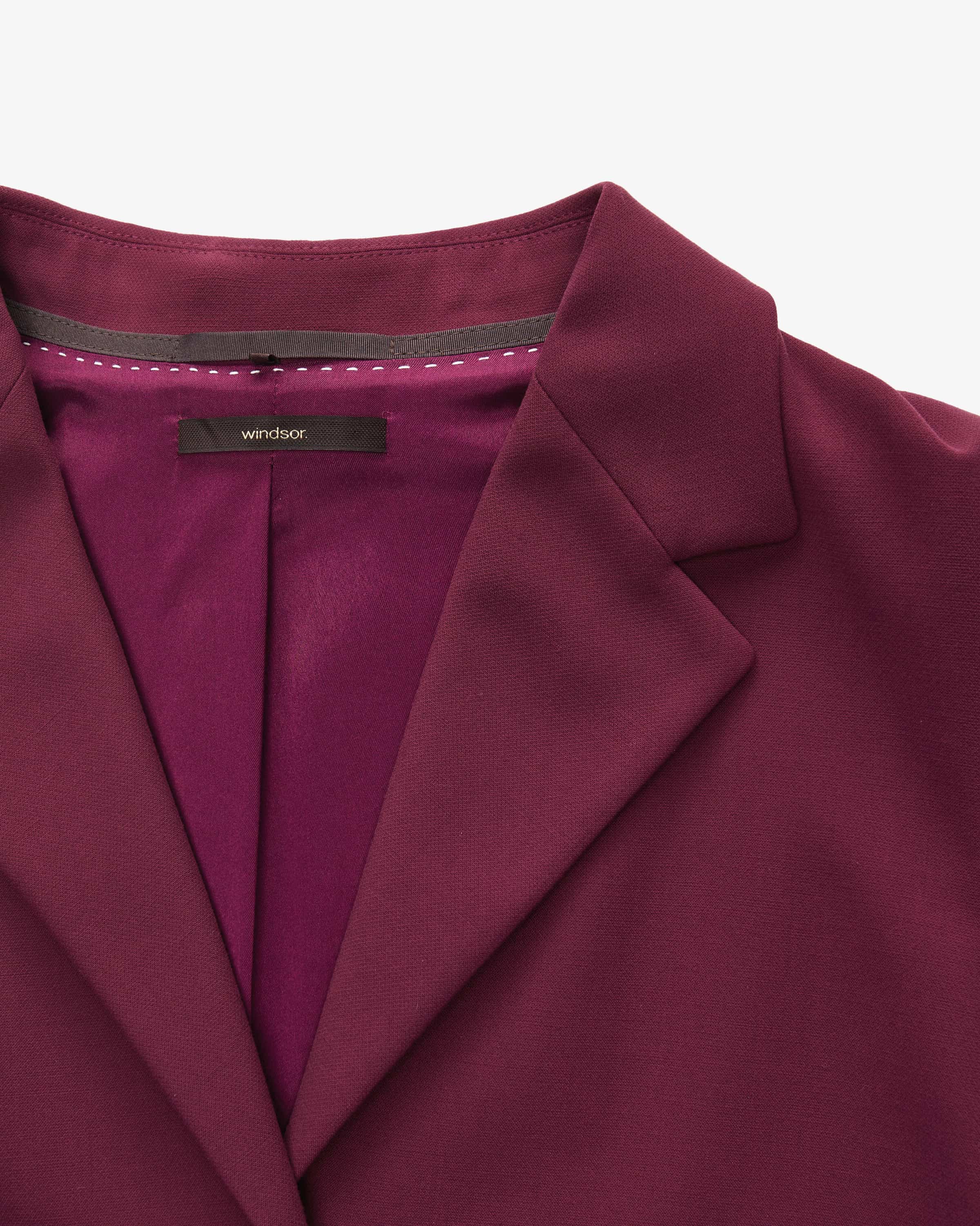 Blazer für Damen von Windsor in Bordeaux. Für elegante Power-Auftritte - Das Modell punktet mit verkürzter sowie ausgestellter Passform und kreiert so einen modischen Look, während klassische Details das Gesamtbild stilvoll vollenden.