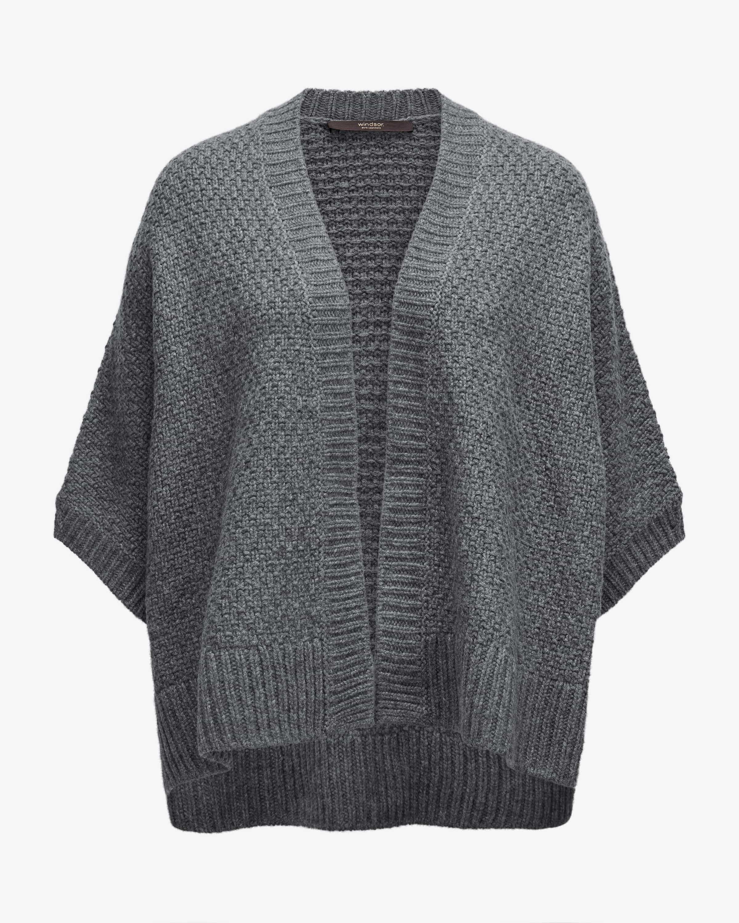 Cashmere-Cape für Damen von Windsor in Grau. Während die reine Cashmere-Qualität in Waffelstrick-Aufmachung eine weiche Haptik schafft, kreiert die weite Cape- Silhouette mit kurzen Ärmeln einen legeren Layering-Favoriten.