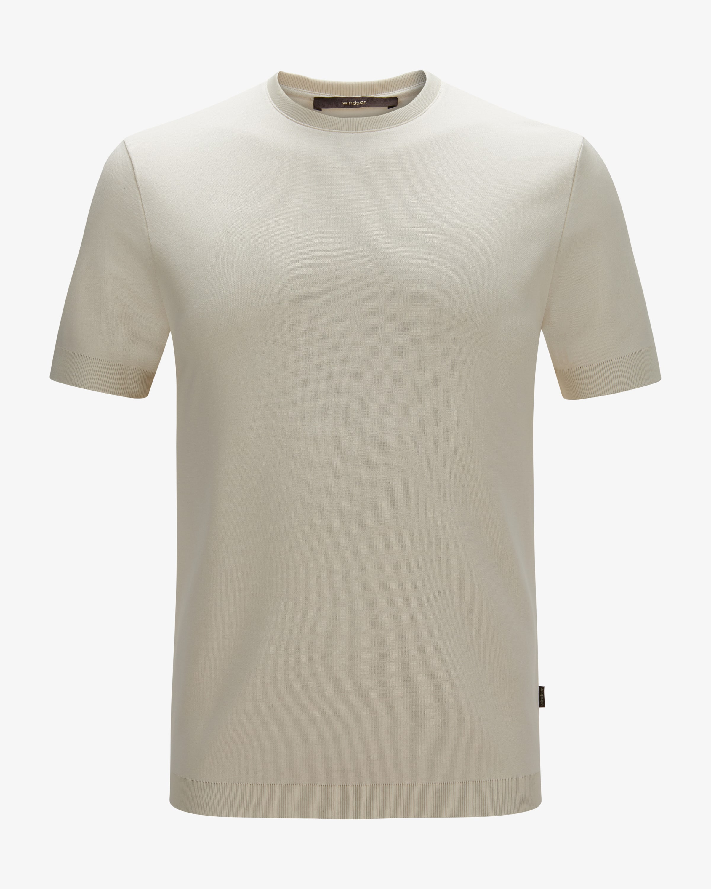 Floro T-Shirt für Herren von Windsor in Creme. Das Modell aus besonders softer Baumwoll-Verarbeitung begeistert in cleaner Feinstrick-Aufmachung und wird durch die Rippstrick-Details gekonnt vollendet.