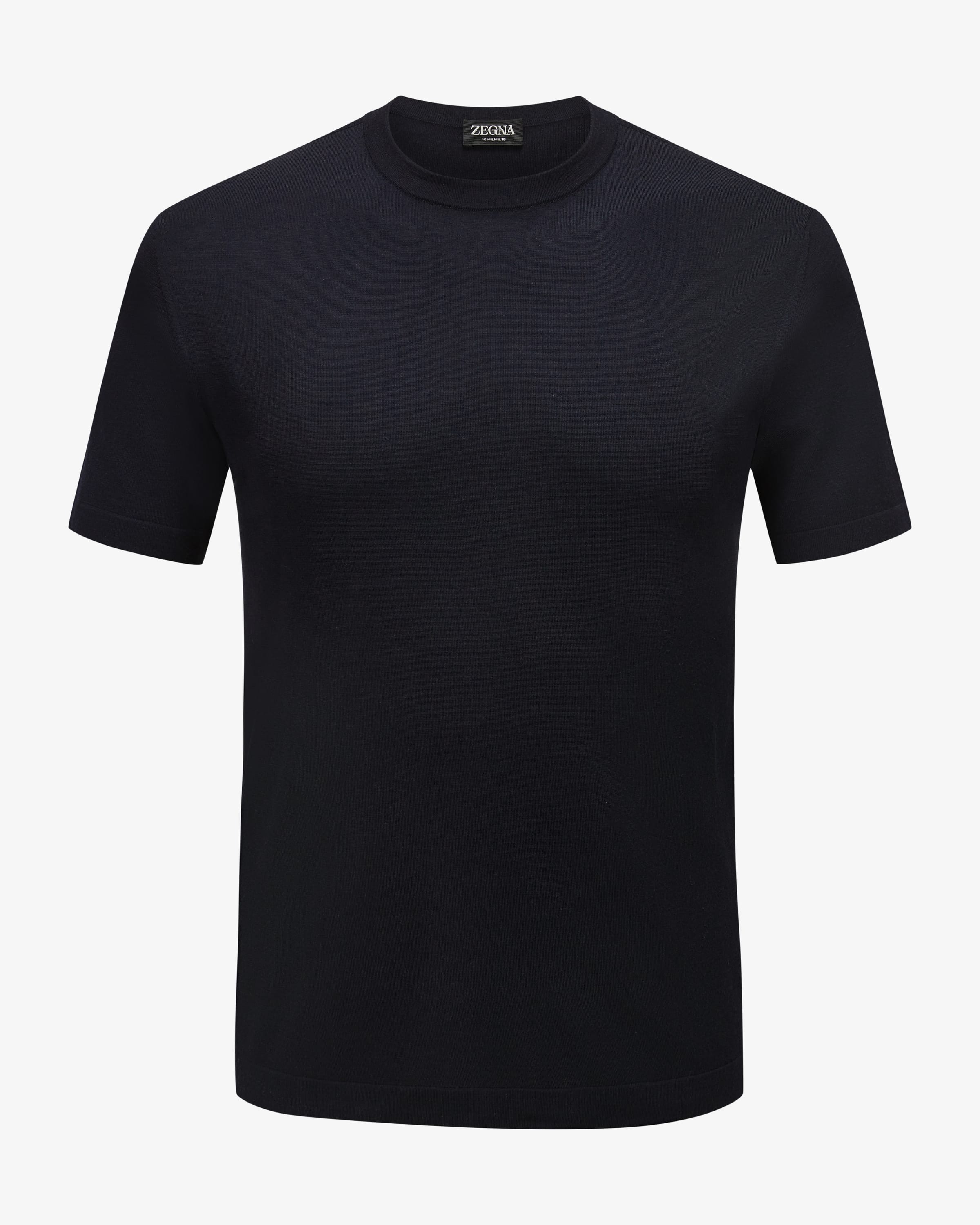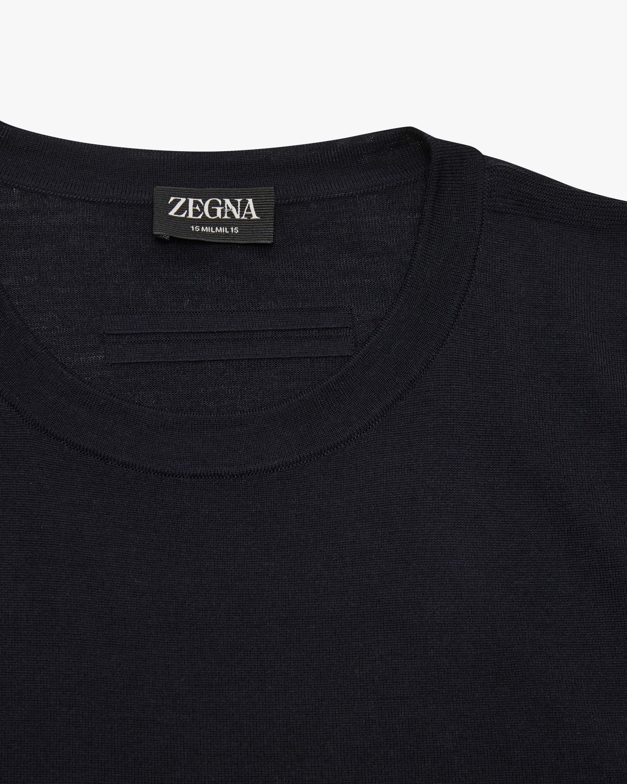Strickshirt für Herren von Zegna in Nachtblau. Zegna ist ein italienisches Luxuslabel mit über 100-jähriger Tradition – Maßstab für edle Männermode. Dieses Modell avanciert dank der feinen Woll-Verarbeitung in exklusiver 15 milmil 15 Qualität zu einem luxuriösen Basic, welches mit besonders leichtem Tragegefühl überzeugt.