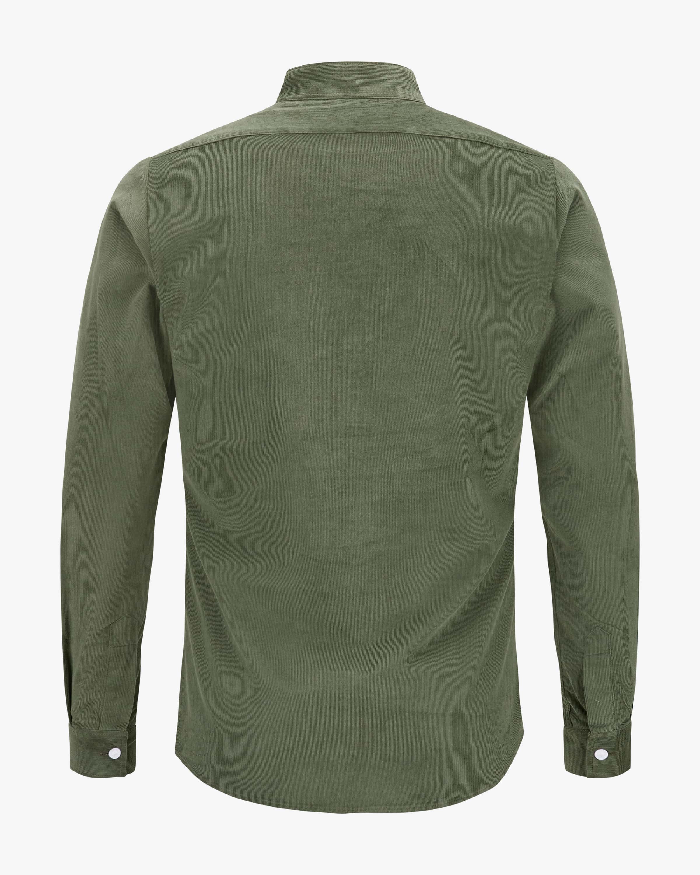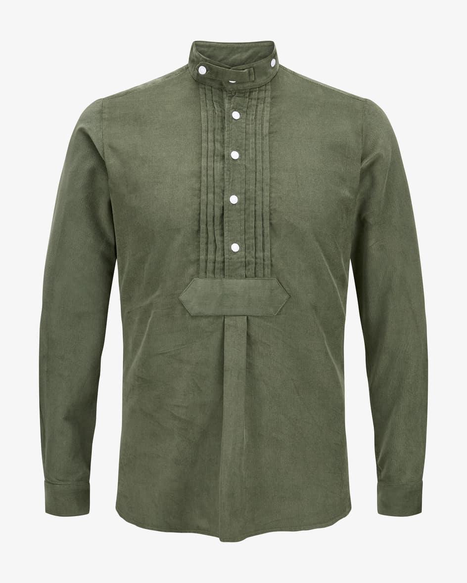 Narrow traditional corduroy shirt for men by Hund Sans scho in khaki. The two Munich friends founded their label to design contemporary traditional shirts with that that certain something, which are easy to wear and will look great at any Oktoberfest or folk festival and offer high wearing comfort. This Pfoad model impresses with stylish piping details along the button placket, while the fine the fine corduroy fabric lends it a modern character.