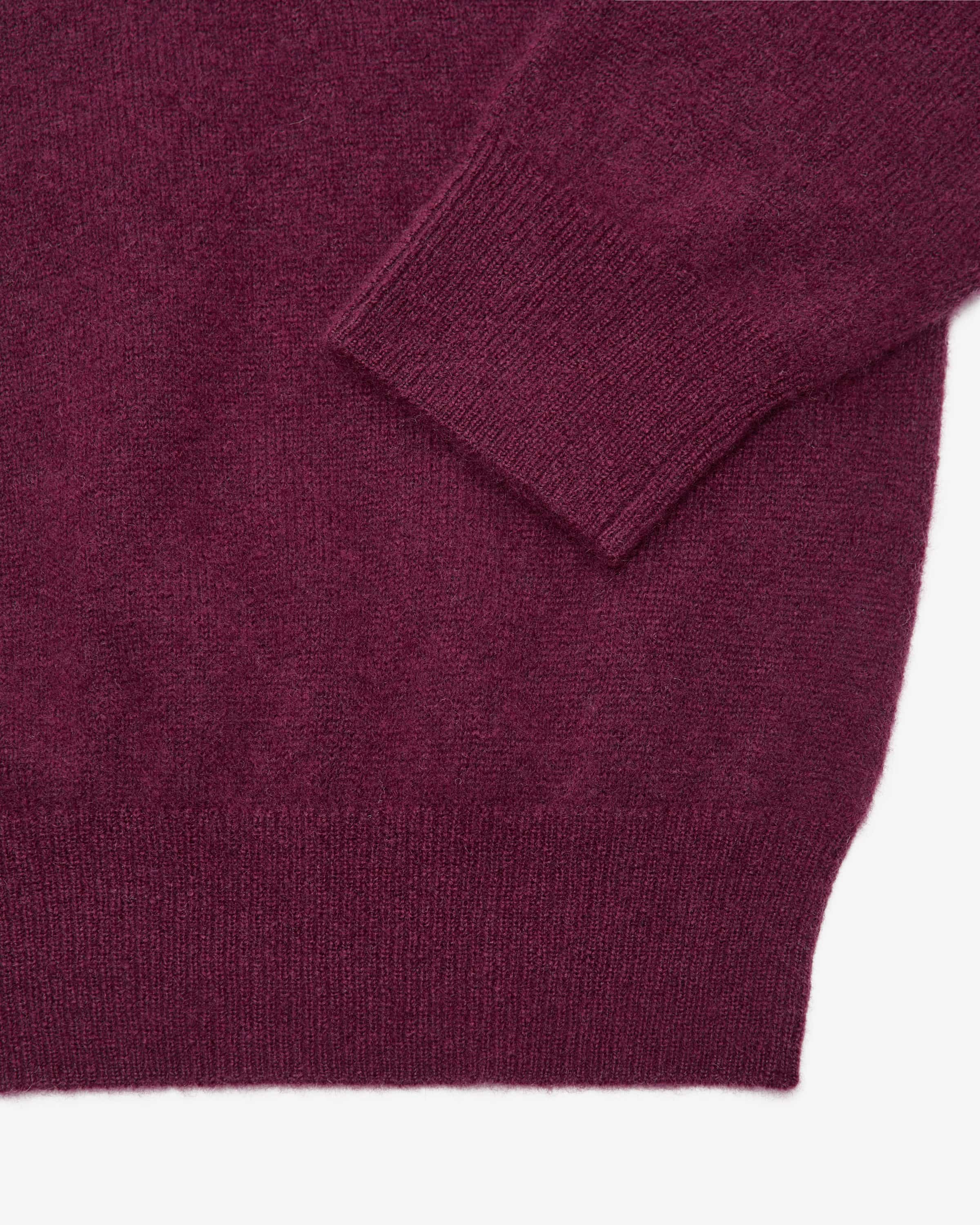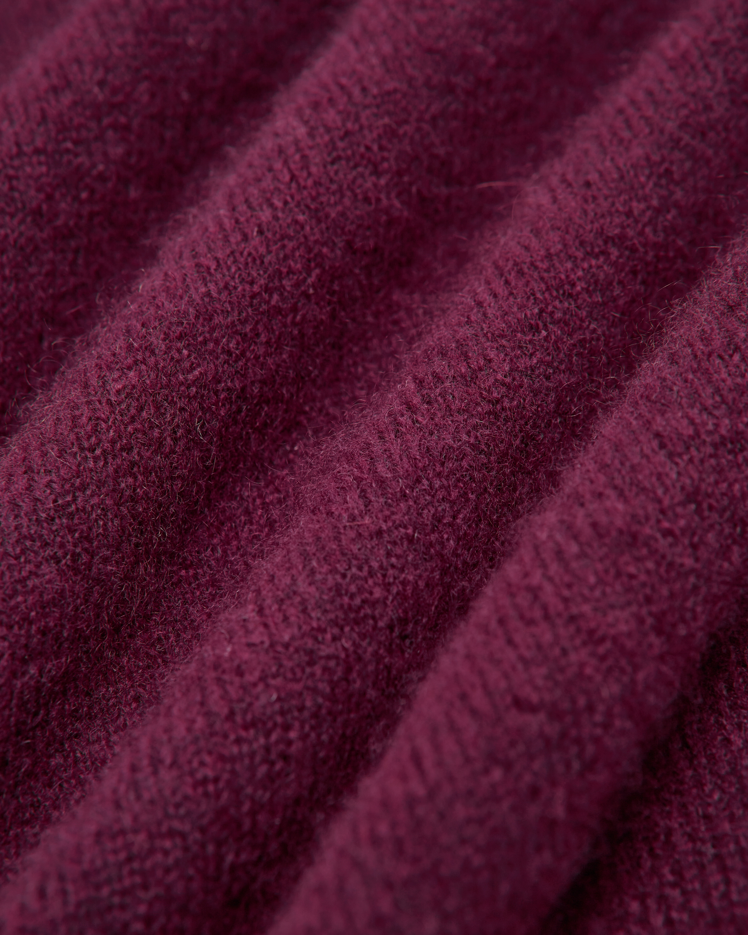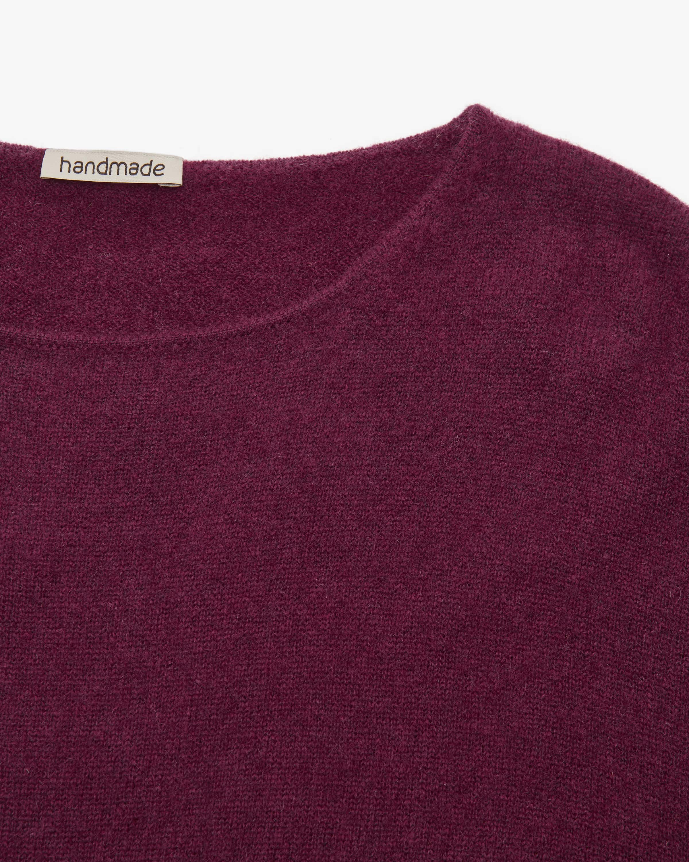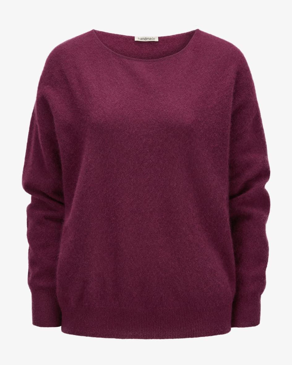 Cashmere-Seiden-Pullover für Damen von handmade in Bordeaux. Dank der Seiden- Cashmere-Verarbeitung punktet das Modell mit hohem Tragekomfort, während das sonst schlichte Modell mit Rippstrick-Bündchen als legerer Begleiter für Casual- Looks besticht.